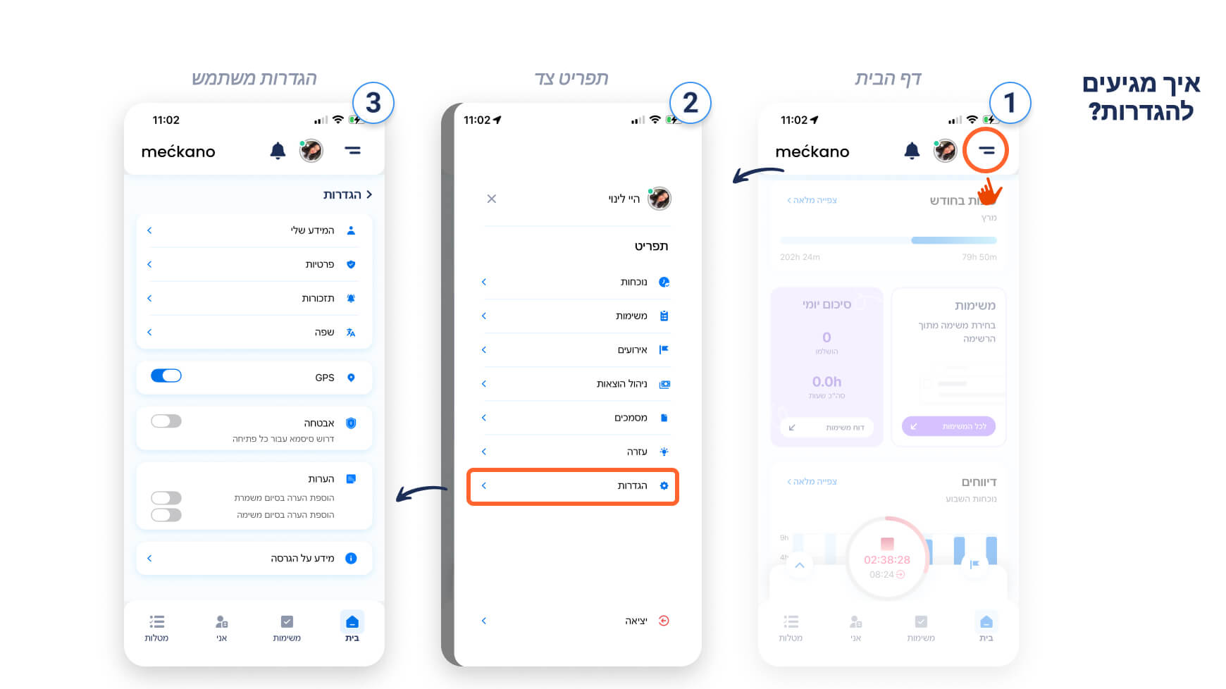 באזור ההגדרות תוכלו לצפות ולעדכן את הפרטים האישיים שלכם, ולהגדיר את אופן השימוש באפליקציה לנוחיותכם – כולל תזכורות, שפה, אבטחה והעדפות נוספות.